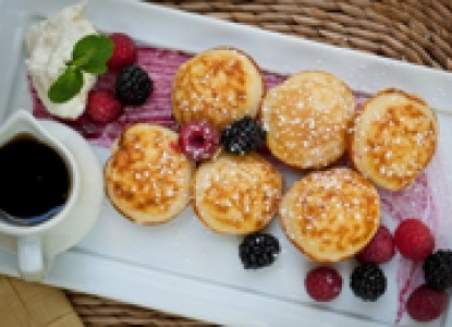 1. In a clean glass or metal bowl, beat the egg whites with an electric mixer until they can hold a stiff peak. Set aside. 2. Mix together the flour, baking powder, salt, baking soda, sugar, egg yolks, melted butter and milk at one time and beat until smooth. Gently fold in the egg whites last. 3. Put about 1tablespoon of vegetable oil in the bottom of each aebleskiver pan cup and heat until hot. Pour in about 2 tablespoons of the batter into each cup. Using a teaspoon stuff each one of the pancakes with your favorite fillings. As soon as they get bubbly around the edge, turn them quickly (Danish cooks use a long knitting needle, but wooden coffee stirs will work). Continue cooking, turning the ball to keep it from burning.