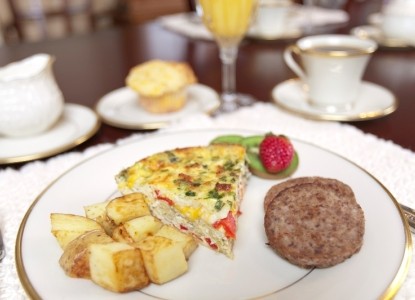 Enjoy this Roasted Red Pepper and Spinach Frittata recipe from the kitchen of North Lodge on Oakland bed and breakfast in Asheville, NC.
