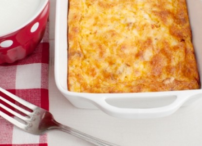 Spray a 9 x 13-inch glass pan and a 7 x 12-inch glass pan with butter flavored spray and place the bread in the bottom of pans. Sprinkle diced ham & cheese on the bread. * Sprinkle instant onion over ham & cheese. In a medium bowl mix the eggs, salt, dry mustard, and milk. Pour the egg mixture over the casserole. Cover with plastic wrap and refrigerate overnight.