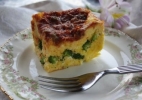 Separate and press crescent dough into a lightly greased 13" x 9" pan. Press into bottom and 1" up each side of pan. Place cheese slices over the dough. In a small bowl, combine the eggs, milk salt and pepper. Pour over cheese slices. Sprinkle with bacon. Cover loosely with tin foil. Bake at 350 degrees for 1 hour or until done. Garnish with parsley.