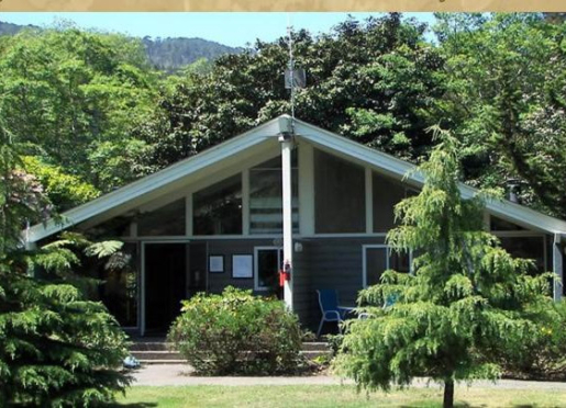 Rooms clustered in small buildings, surrounded by lush vegetation in a valley with a calming creek.