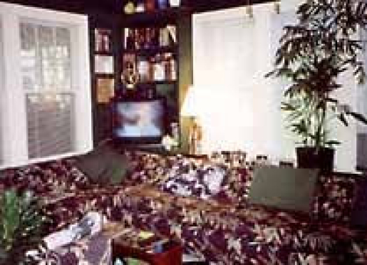 Relax in the Sunroom amidst greenery and wicker furniture. A beautiful setting to enjoy a book, or just sit back and (if the wind is right) listen to a Ravinia rehearsal!