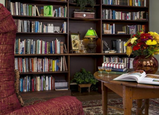 - Library with seating and work-space.