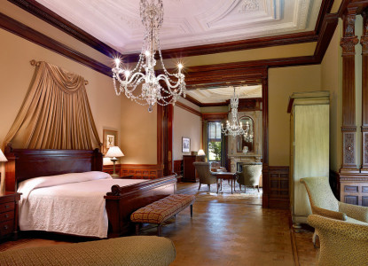 Experience the ultimate in Charleston luxury in our Grand Mansion Suite, a two-room retreat furnished with two floor-to-ceiling marble gas fireplaces, two original Italian chandeliers and original Tiffany stained glass. This one-of-a-kind suite is ideal for entertaining.