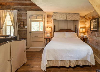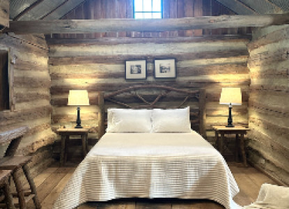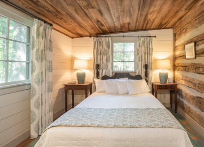 This is cabin is named after an antique moonshine still nearby. It accommodates two comfortably with a queen bed and en suite bath.