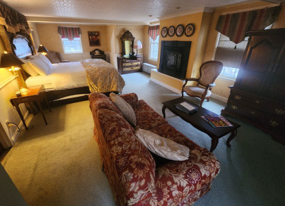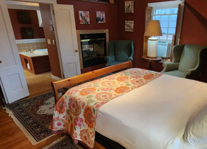 This room offers a King bed with sitting area, gas fireplace modern bath with single tub/shower & jacuzzi jets.