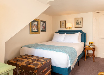Enjoy a budget-friendly Vermont stay in our charming second-floor room. Featuring a queen bed, a private alcove for relaxation, and a small desk, this room offers comfort and convenience. The bathroom is shared with two other rooms.
