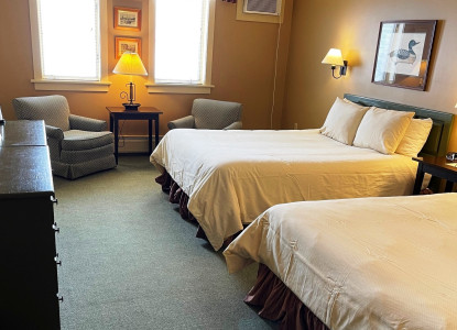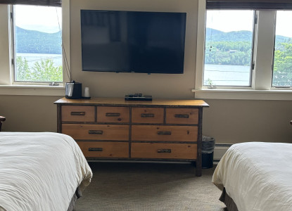 The Westmore VT vacation rental is not a pet friendly room. Its a charming room with lovely views of Willoughby Lake in Vermont. It features two queen beds and a private bath with a Stall shower.