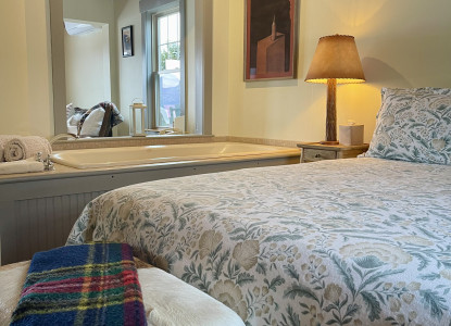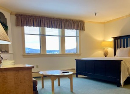 The Garden View Room is a comfortable, cozy room with view of the Lake Willoughby Mountains in the Northeast Kingdom of VT. It features a queen bed and private bath with a standup shower.