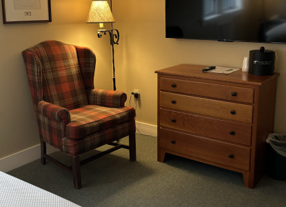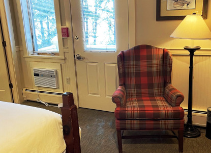 The Courtyard vacation rental in Northern VT is a cozy room offering an optional separate entrance. It features a handcrafted four poster queen bed and private bath. Attention: If you are bringing a pet you will need to call the inn and make the reservation as there is a $40 per night fee that needs to be applied. Attention: This room is near the bar and you may hear the humming of the bar coolers and the bar activity so if you are noise sensitive this is not the room for you.