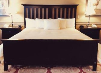 An Exceptional 1st floor Suite with King bed, Jacuzzi tub (seats 2), Private porch, Lake View with mini Kitchenette (Coffee maker, Fridge, Microwave), Walk in Shower. The fireplace is not functioning and is just for ambiance.